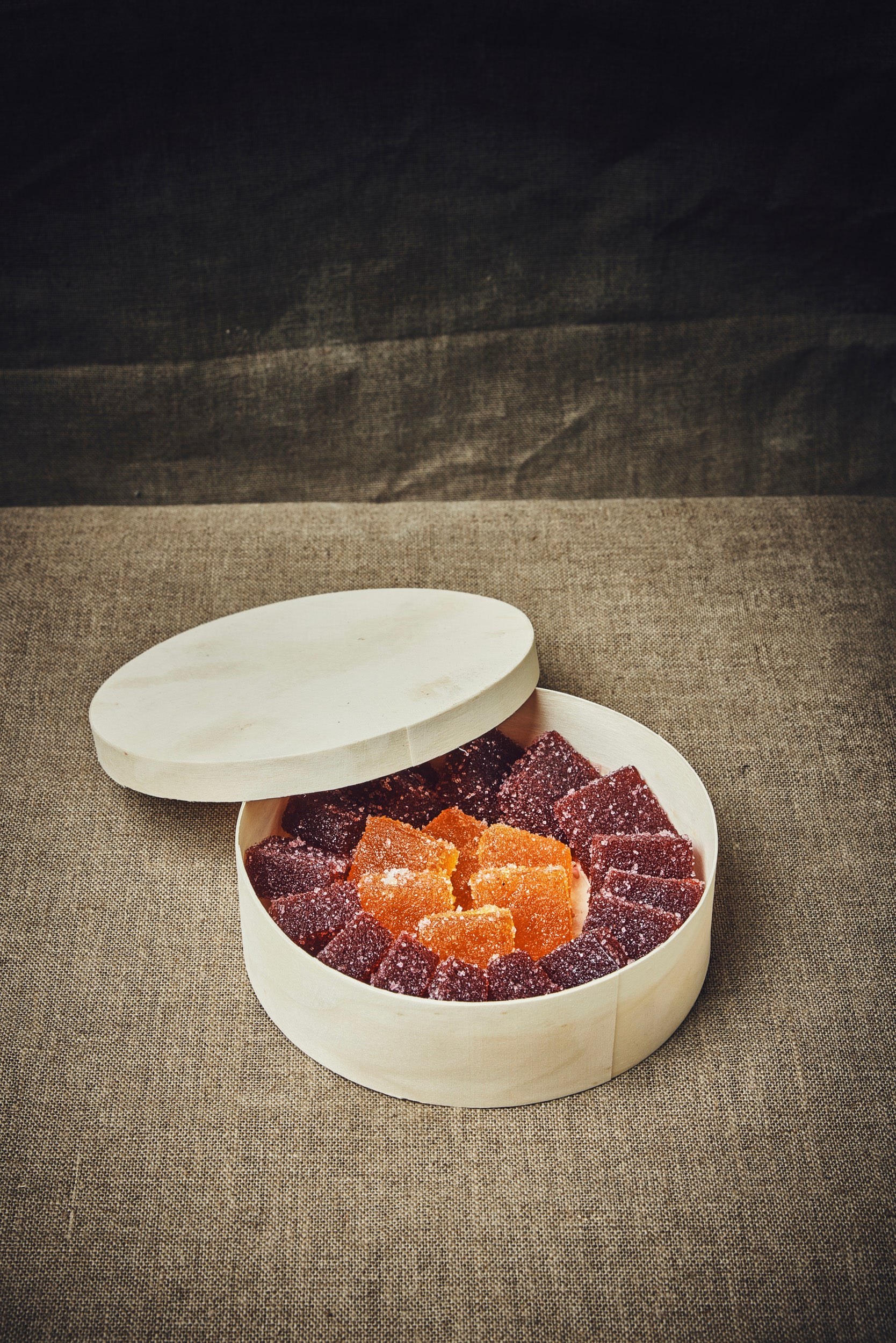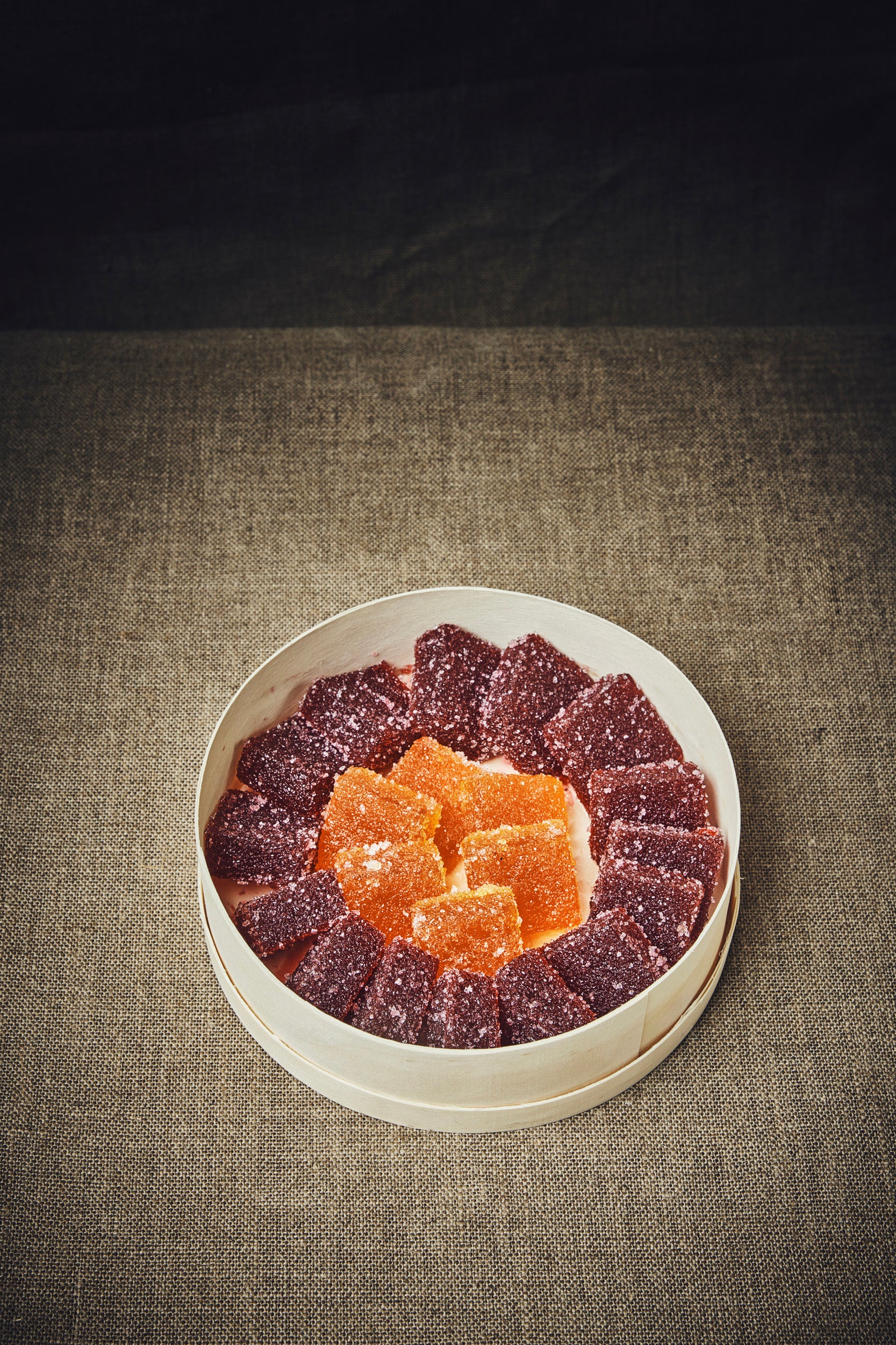 Framboise, poivre de cassis (pas de panique pas de goût de poivre, ce sont des baies de cassis séchées) & Mangue, fruits de la passion.